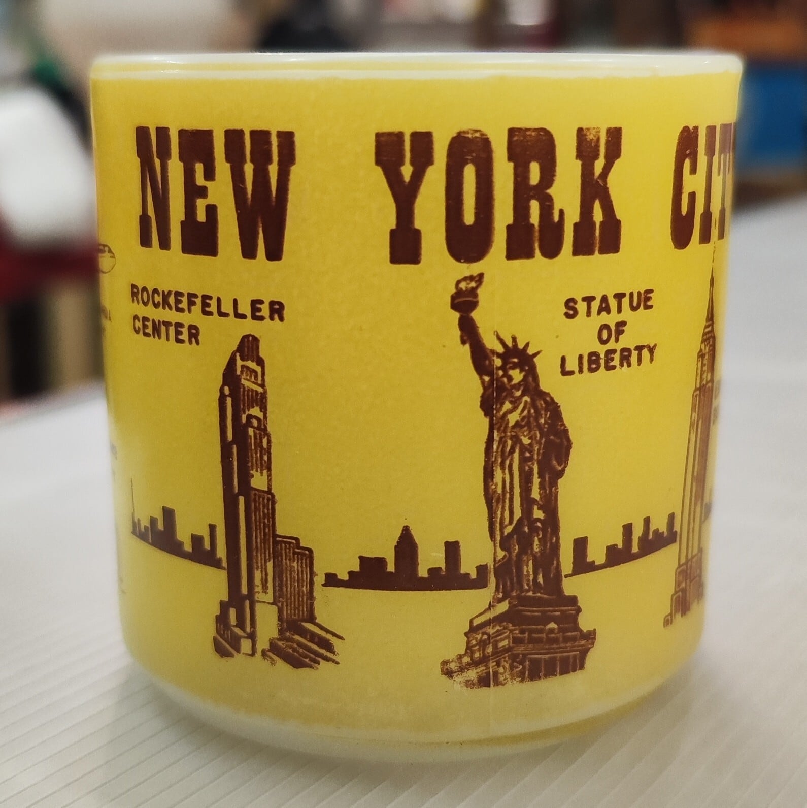 ニューヨーク市のランドマークのロックフェラー・センター、自由の女神像などが描かれたマグカップです。