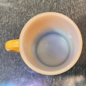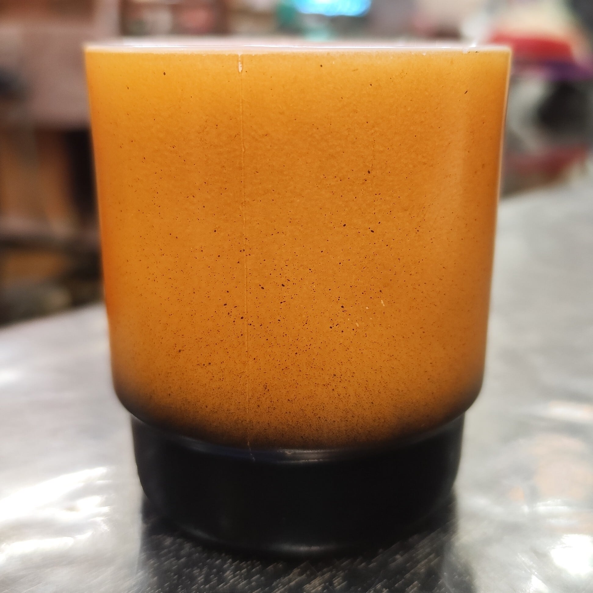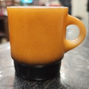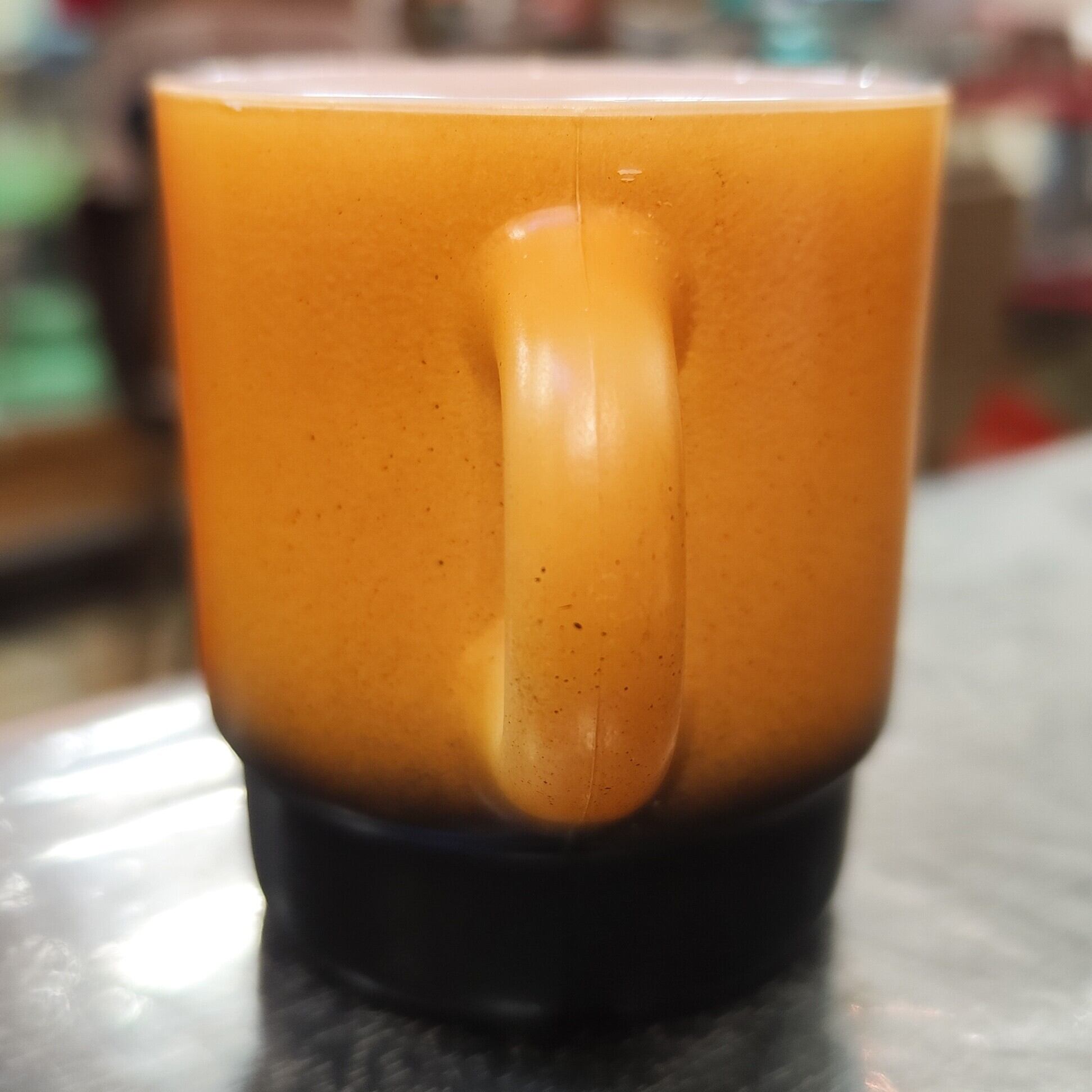 ファイヤーキングのスタッキングマグです。オレンジ色の上部から、底部に向かって黒色へ変化するグラデーションカラーで、所々ある斑点模様は、製造過程で生じるものです。