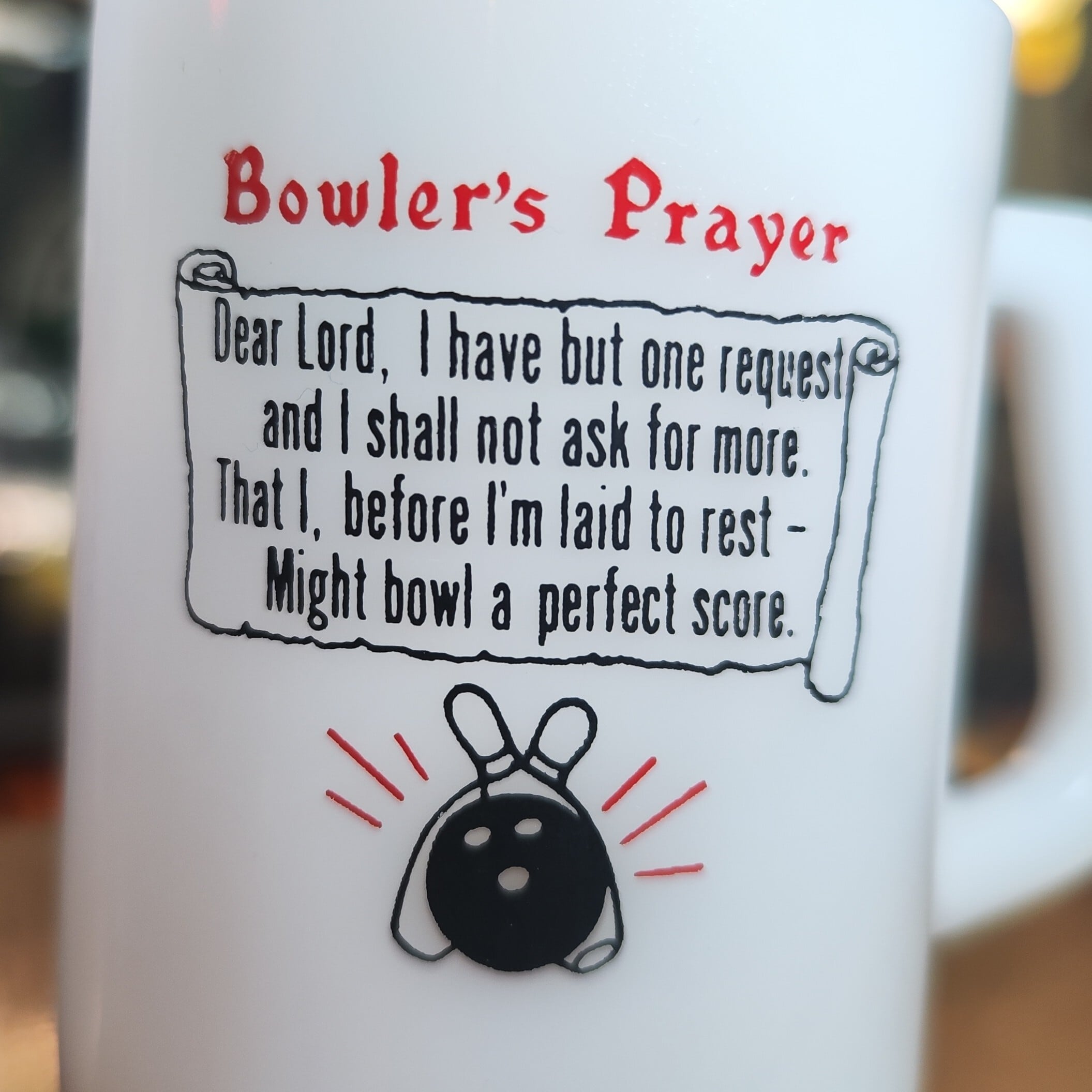 ボウリングをテーマにした「ボウラーの祈り」とデザインのマグです。