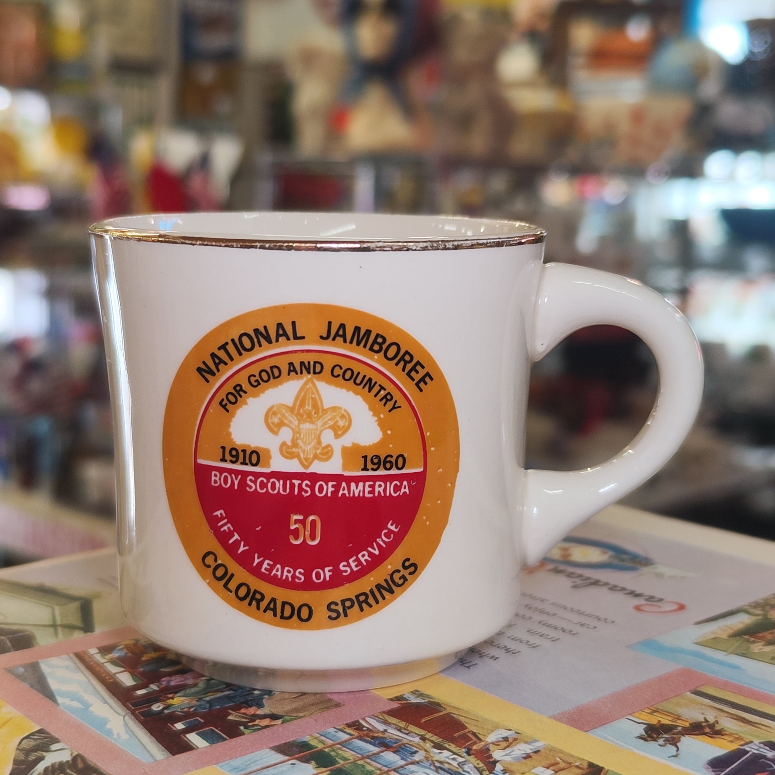 1960年にアメリカ、ボーイスカウト連盟のコロラドスプリングスで開催された第5回ナショナル・ジャンボリーを記念して作られた記念マグです。